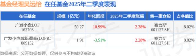 2025年二季度吳遠(yuǎn)怡表現(xiàn):廣發(fā)小盤LOF基金季度漲幅2.38%