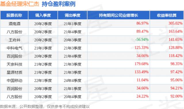 宋仁杰管理的泰康策略?xún)?yōu)選混合基金于2020年2季度買(mǎi)入酒鬼酒,持有3個(gè)季度后,在2021年1季度賣(mài)出。持有期間的估算收益率為305.02%,且在2020年到2021年,酒鬼酒的年報(bào)營(yíng)業(yè)總收入增幅達(dá)86.97%。