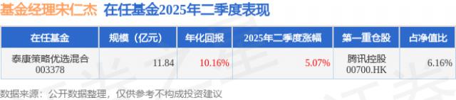 2025年二季度宋仁杰表現(xiàn):泰康策略?xún)?yōu)選混合基金季度漲幅達(dá)5.07%
