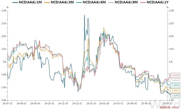 全國和主要股份制銀行一年期同業(yè)存單最新成交價(jià)在1.62%附近,較上日變化不大。