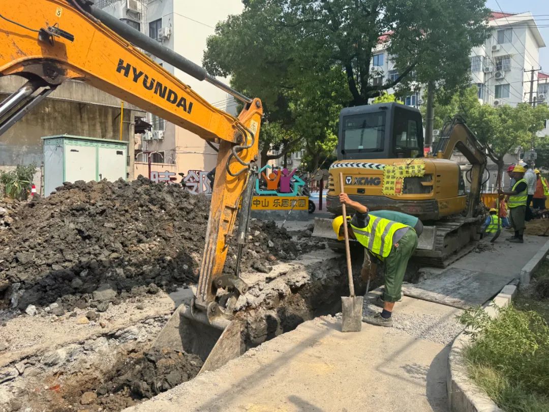 7月16日上午9點,天虹二村改造現(xiàn)場機器聲不斷。施工人員操作挖掘機破開路面,有條不紊地開展溝槽開挖、管道鋪設(shè)和熱熔連接等作業(yè)。松江自來水有限公司施工管理負(fù)責(zé)人沈忱表示:“該點位工程已接近尾聲,預(yù)計本月末就能完工。”