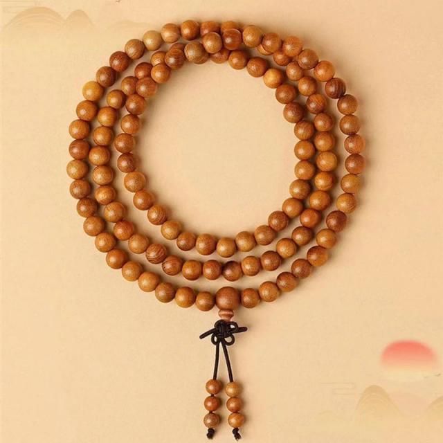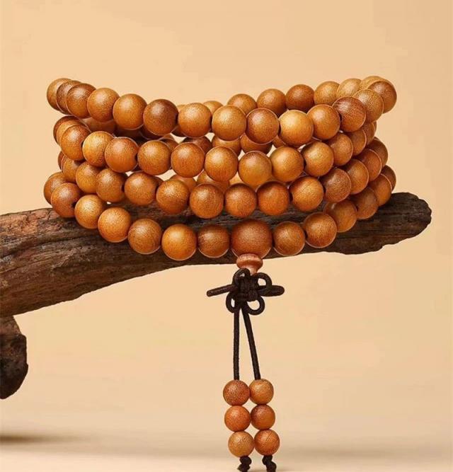 這款手串甄選出的優(yōu)質(zhì)木料,木紋清晰,內(nèi)外一致,打磨得十分平滑,佩戴起來(lái)很舒適。