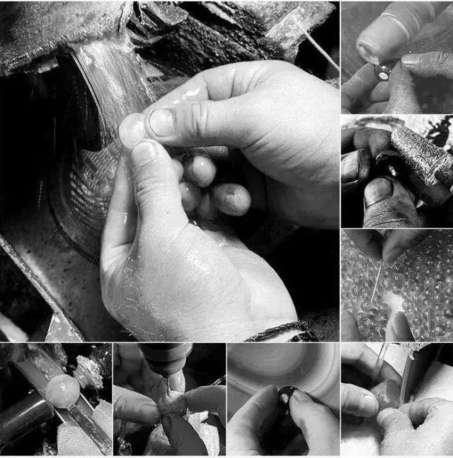 從原木到制成手串成品,要經(jīng)過(guò)篩選、找點(diǎn)、穿孔、打磨、修圓、拋光、串珠等多道工序。每一個(gè)步驟都精心制作,只為呈現(xiàn)出完美的質(zhì)感。