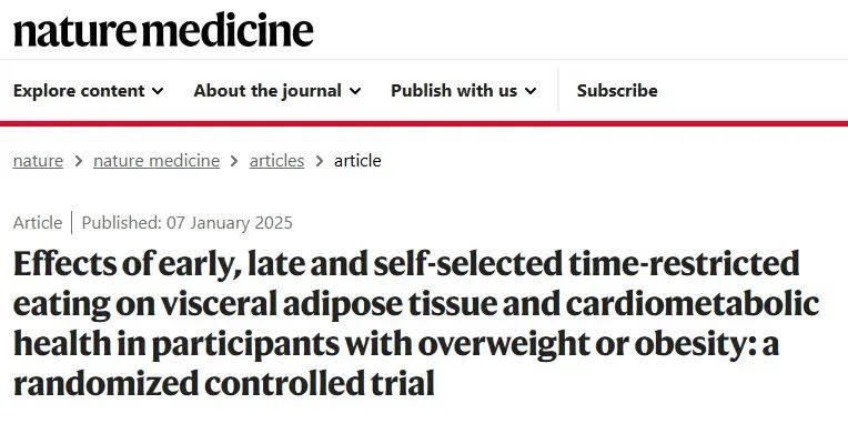 ②Dote - Montero, M., Clavero - Jimeno, A., Merchán - Ramírez, E. et al. Effects of early, late and self - selected time - restricted eating on visceral adipose tissue and cardiometabolic health in participants with overweight or obesity: a randomized controlled trial. Nat Med (2025).③Time - restricted eating reveals a “younger” immune system and reshapes the intestinal microbiome in human.Redox Biology.Volume 78, December 2024, 103422
