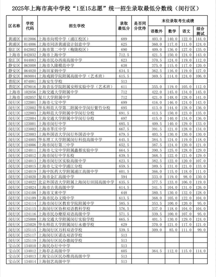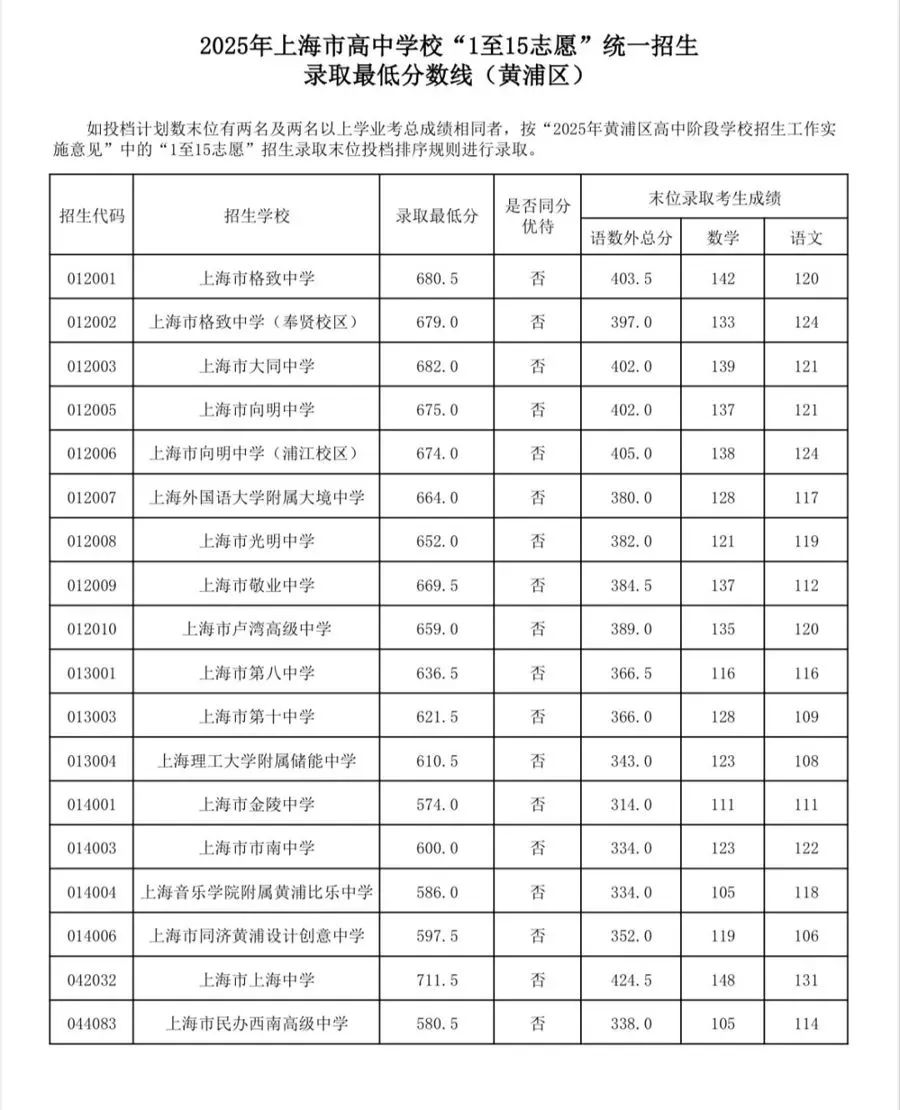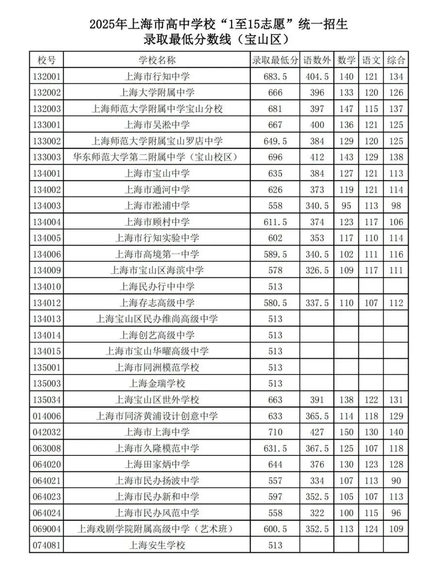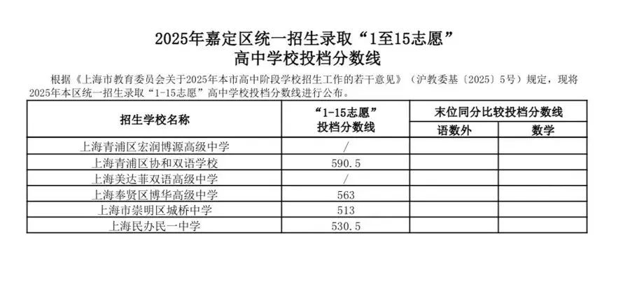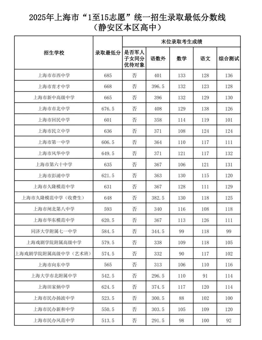 上海公布2025年中考各區(qū)統(tǒng)一批次錄取分數(shù)線