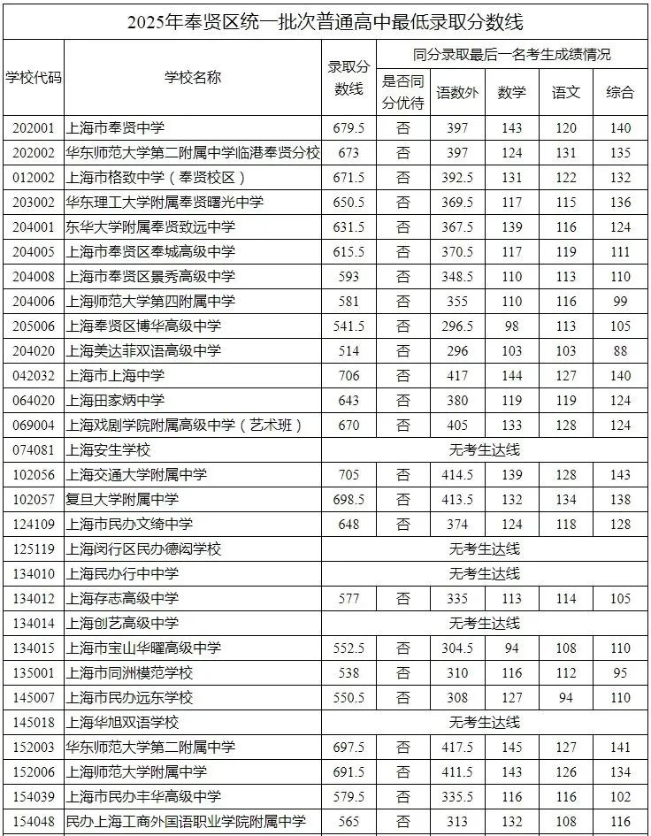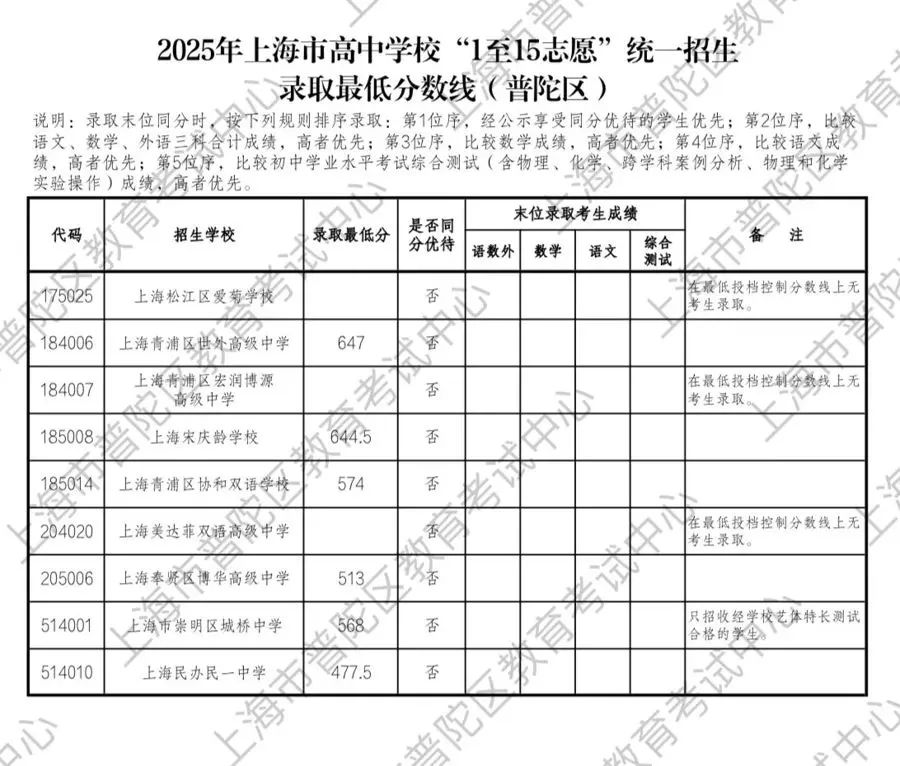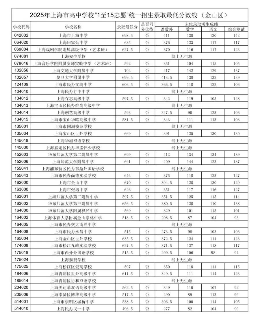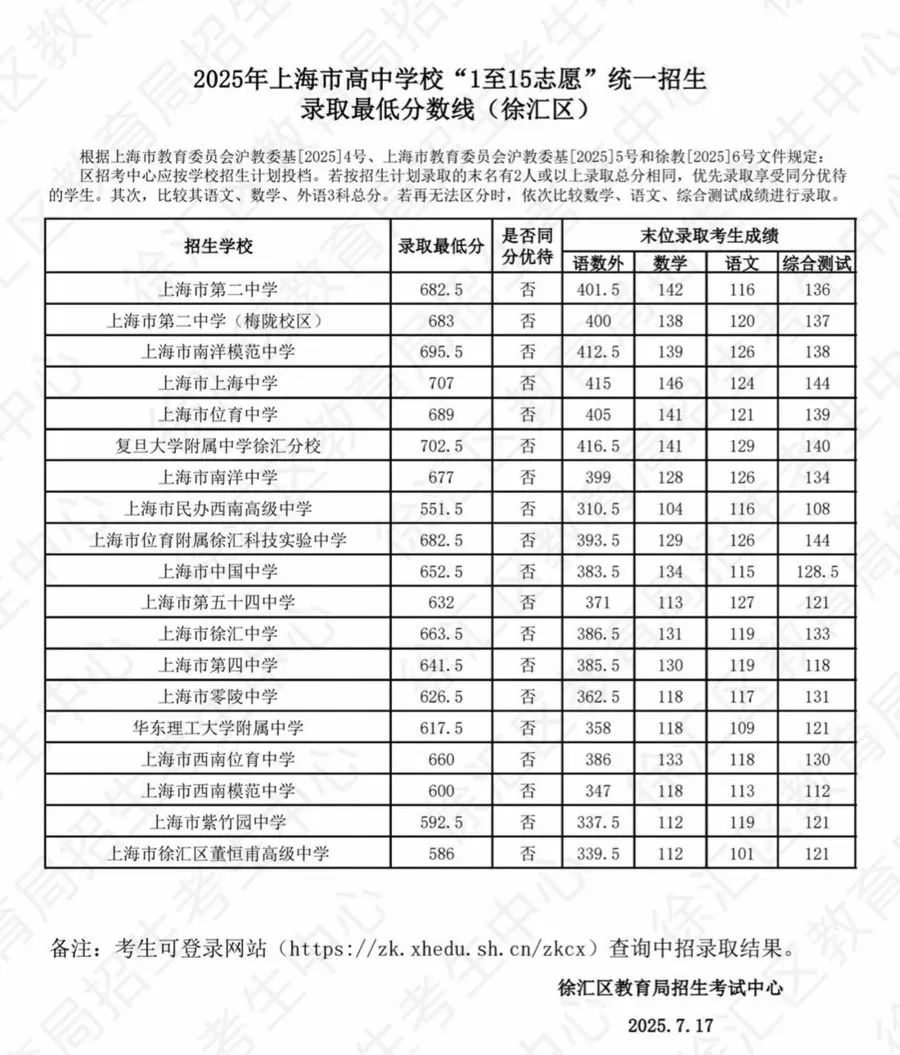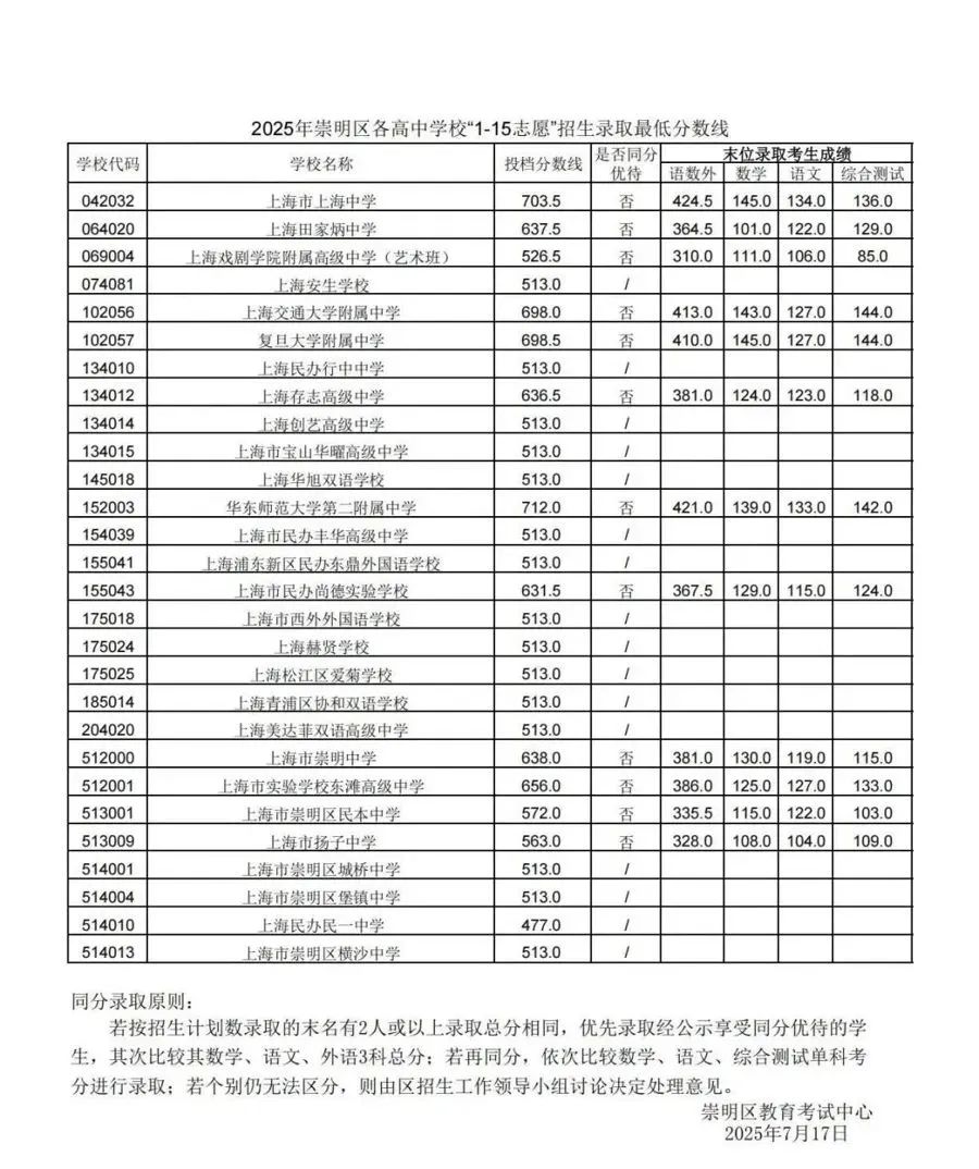 上海公布2025年中考各區(qū)統(tǒng)一批次錄取分數(shù)線