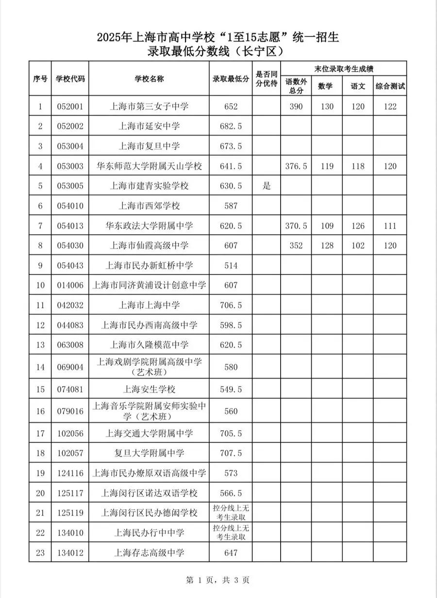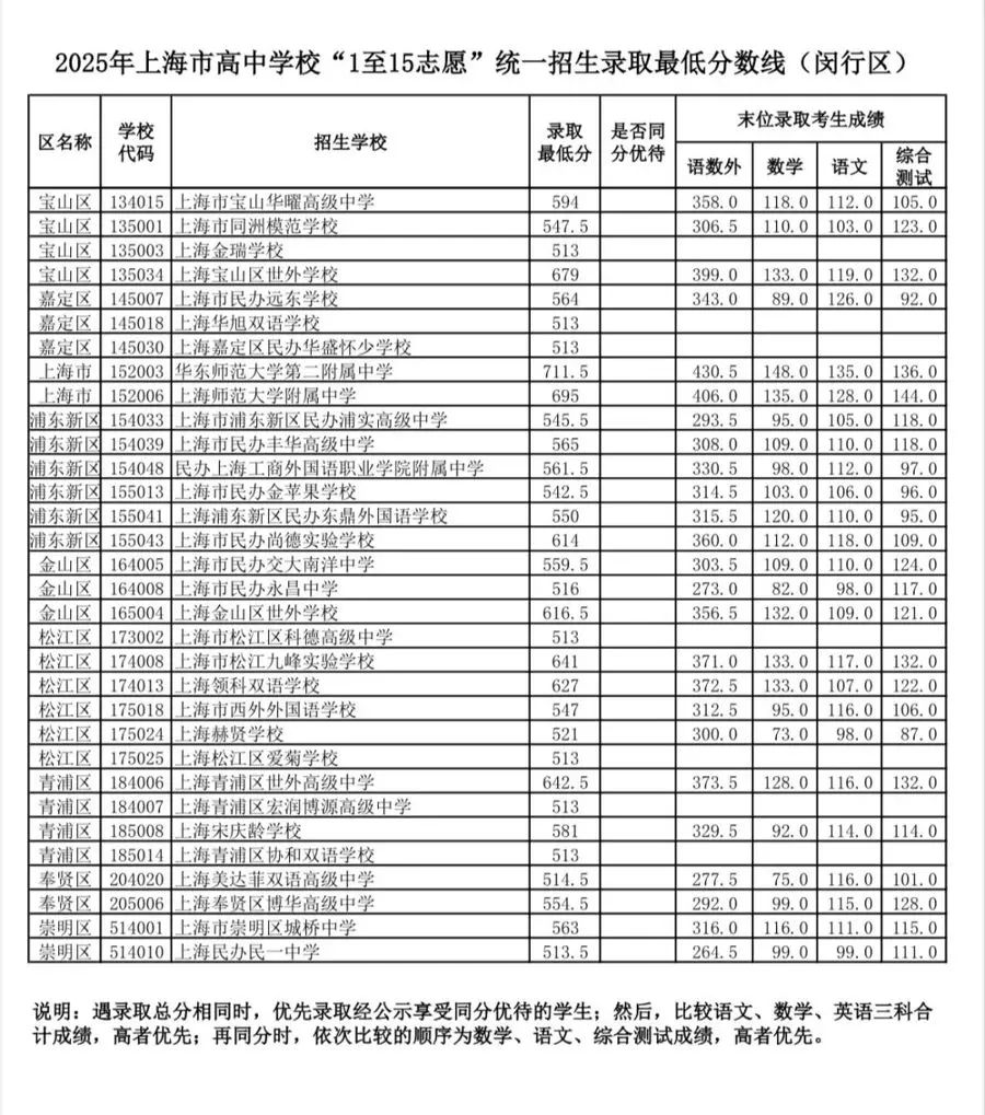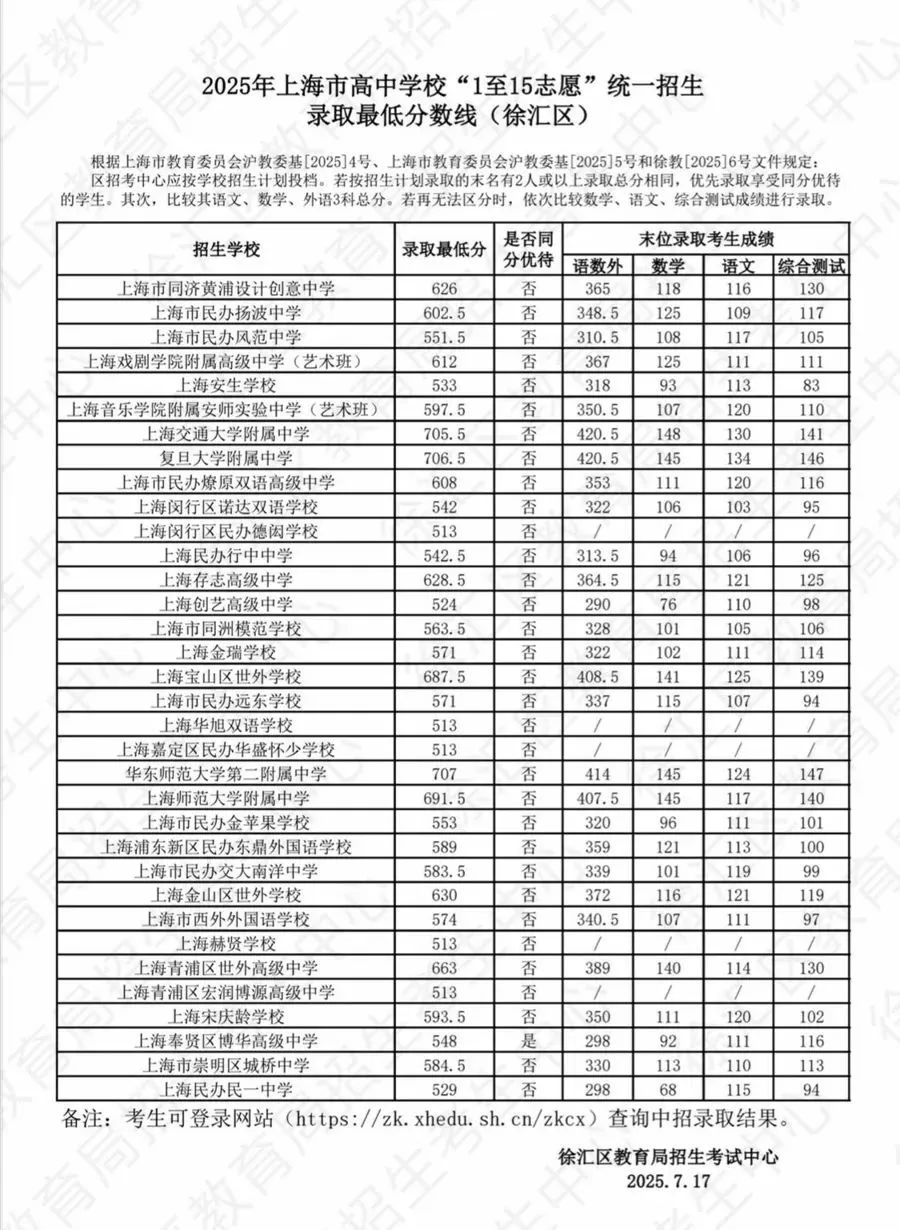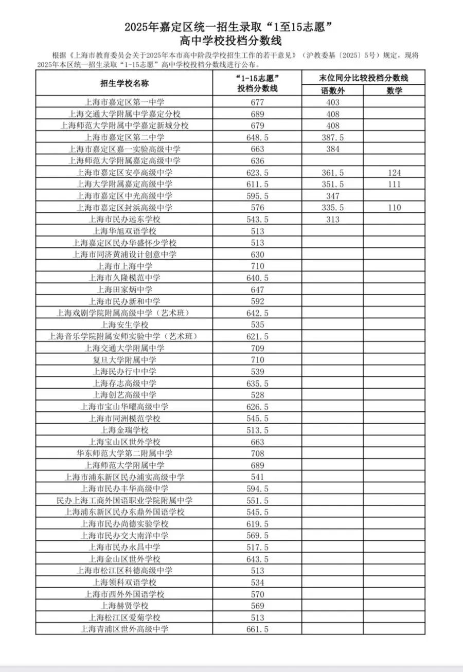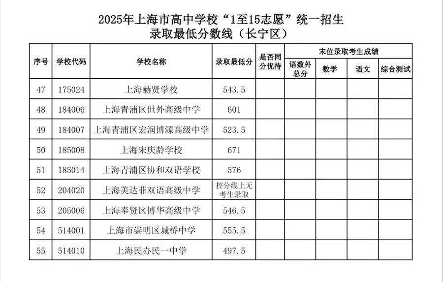 上海公布2025年中考各區(qū)統(tǒng)一批次錄取分數(shù)線