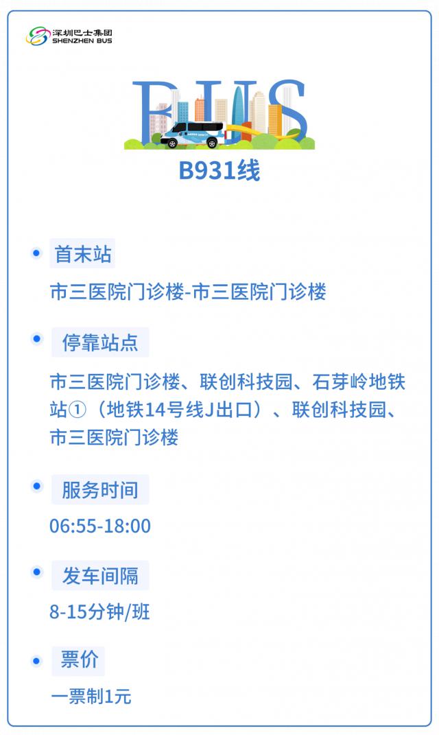 B931線可無縫接駁地鐵14號線石芽嶺站,從J出口出站僅需步行50米,即可換乘B931線,5分鐘就能直達門診大廳,真正實現(xiàn)“出地鐵即上車、下車即門診”。