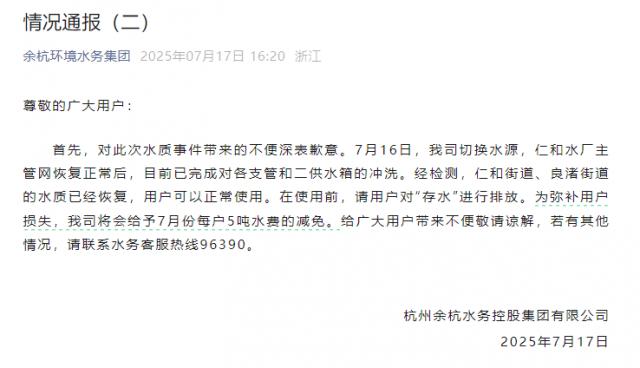 “杭州部分小區(qū)自來(lái)水異味”最新情況回應(yīng)