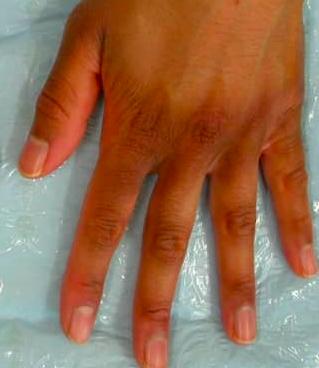 和手腕對比,敏感、泛紅的臉部更暗沉顯黑