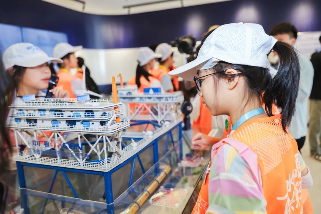 在實(shí)驗(yàn)室解說(shuō)員的講解下,營(yíng)員們看著那些令人眼花繚亂的海工裝備,逐漸了解其原理。百米長(zhǎng)的風(fēng)機(jī)葉片、碩大的風(fēng)機(jī)裝件、固定海面的海洋牧場(chǎng)……伴隨著營(yíng)員們的一聲聲驚呼,海上風(fēng)電不再神秘,海洋科技新時(shí)代的“接力棒”在此傳遞。