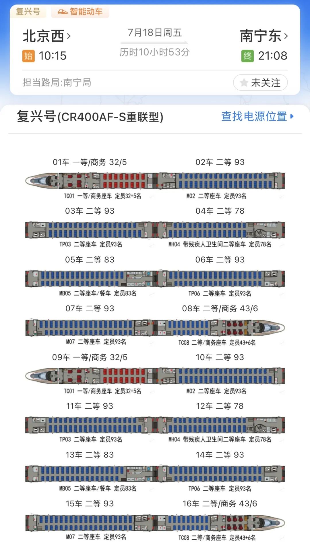 可以看到所在車廂的車廂號(hào)。