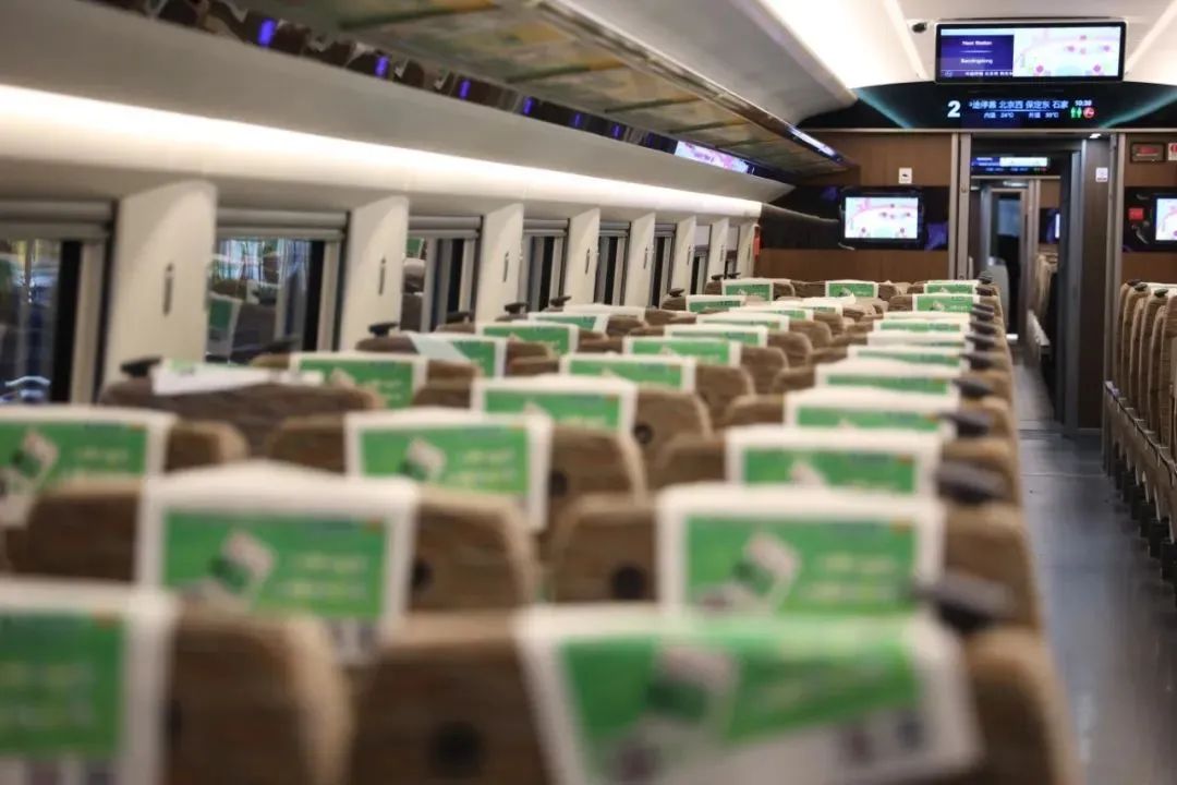 復(fù)興號(hào)智能動(dòng)車組無障礙車廂座椅上,