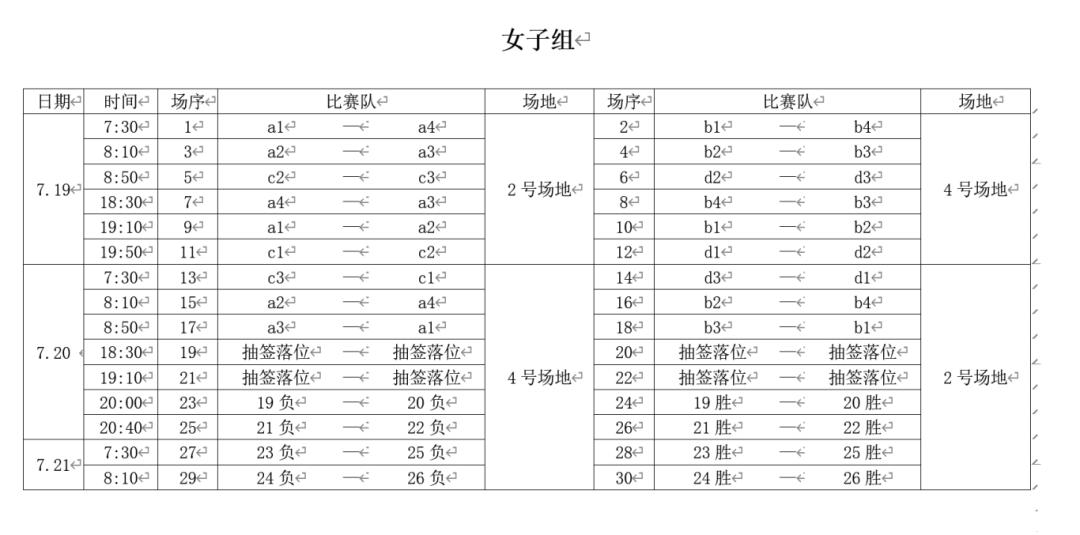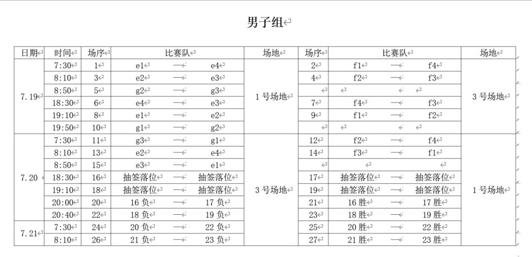 賽事安排