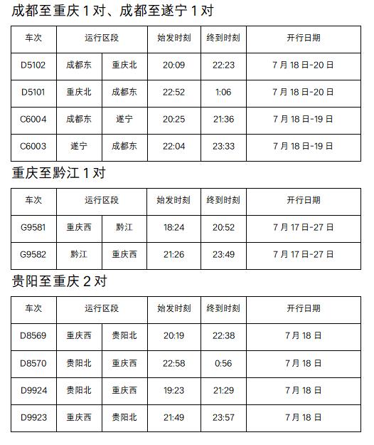 開行日期為7月18日 - 20日。二等座全程票價(jià)折后96.5元,一等座全程票價(jià)折后159元。