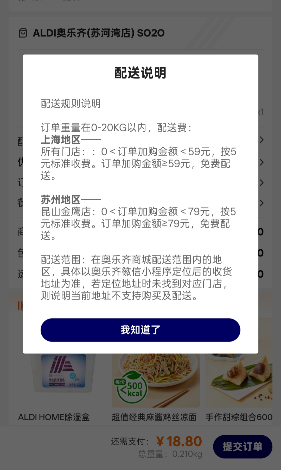 盒馬NB有官方小程序商城,根據(jù)定位提供小時達(dá)和次日自提服務(wù),在上海送貨上門服務(wù)訂單滿39元免運(yùn)費(fèi)(不滿39元每單3元);奧樂齊接入餓了么、京東到家、美團(tuán)外賣等第三方平臺,自營小程序商城也提供配送到家服務(wù),運(yùn)力服務(wù)商為達(dá)達(dá),在上海地區(qū)訂單不滿59元收取5元配送費(fèi)。