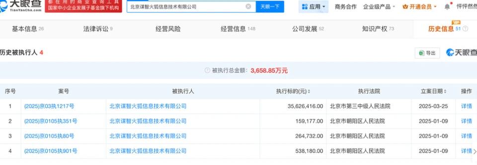 質(zhì)疑聲傳開后,更多細(xì)節(jié)被扒出。天眼查數(shù)據(jù)顯示,火狐在中國(guó)的運(yùn)營(yíng)主體,北京謀智火狐信息技術(shù)有限公司公司,在2024年就有多條被執(zhí)行信息,其中最高一筆金額超過3500萬元人民幣。