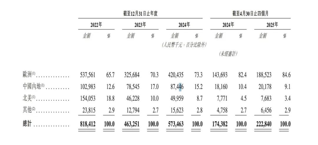 招股書顯示,樂欣戶外來自 OEM/ODM 模式的營收,在 2022 年、2023 年、2024 年及截至 2025 年 4 月 30 日止四個月,分別占總收入的 94.1%、90.2%、92.3%及 92.9%。