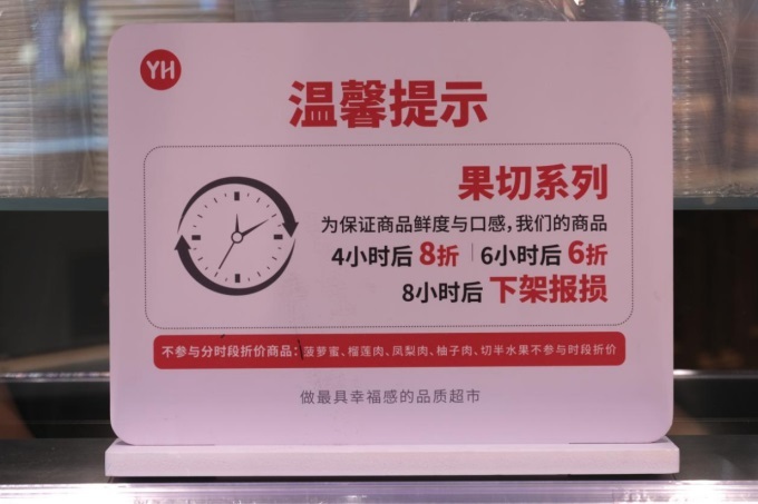 食品安全是調(diào)改重點(diǎn)。門店嚴(yán)格執(zhí)行商品溯源管理,對(duì)水果進(jìn)行糖度檢測(cè),果切執(zhí)行“468原則”,鮮度敏感商品推行日清折價(jià)機(jī)制,不售賣隔夜商品,保障食品安全。