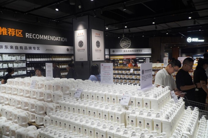 食百區(qū)重點(diǎn)推介南昌本地特色好物,同時(shí)陳列著DL啤酒、自由·愛白酒、DL果汁等多款胖東來同款商品。永輝自有品牌如詠悅匯小酌、100%果汁等也為品質(zhì)生活提供多元選擇。