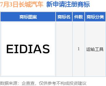 據(jù)證券之星消息,天眼查APP數(shù)據(jù)顯示,近日長城汽車股份有限公司新提交了1件商標(biāo)注冊申請。商標(biāo)申請詳情如下: