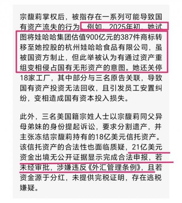 她讓大家圍攻的“魏”,就是那三個私生子和他們的母親杜建英。而她想救的“趙”,是她在W哈哈名義下自己成立的公司,以及多個代G廠。多年來,哈哈系所有業(yè)務(wù)都被長公主轉(zhuǎn)移到她個人名下的公司,賺的利潤,除了上交一點應(yīng)付差事,剩下的都進了“漂亮國人”的口袋。這里的“漂亮國人”可不只是那三個私生子,長公主自己在漂亮國也有孩子。這些被吞的錢,還美其名曰“分給職工了”。