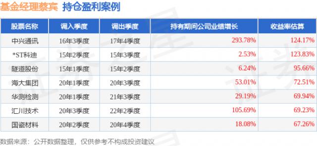 蔡賓管理的長(zhǎng)盛同享靈活配置A基金于2016年3季度買入中興通訊,持有1年又1個(gè)季度后,在2017年4季度賣出。持有期間的估算收益率為124.17%,2016年到2017年中興通訊的年報(bào)歸屬凈利潤(rùn)增幅達(dá)293.78%。