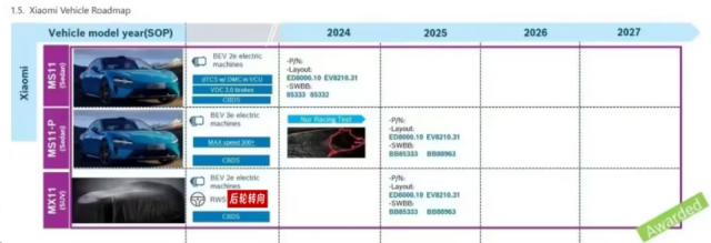 我篤定這車會在 2026 年發(fā)布,是因?yàn)轭^部汽車供應(yīng)商博世去年 9 月發(fā)布的技術(shù)路線圖不小心透露了小米后續(xù)兩年的新車規(guī)劃。比如 2025 年小米發(fā)布了小米 SU7 Ultra 和一臺純電 SUV,目前看來命中率 100%,路線圖還顯示 2026 年小米將推出首臺增程式動(dòng)力的 SUV,結(jié)合目前爆料,形成了閉環(huán)。