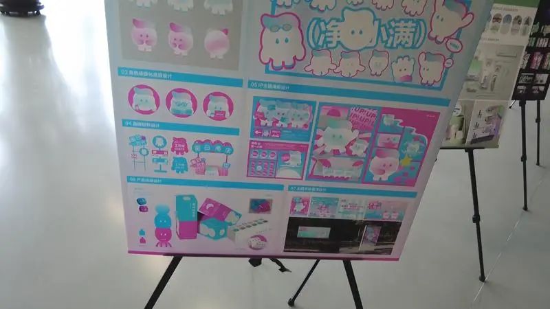 浙江萬(wàn)里學(xué)院袁慶璇同學(xué)的作品讓美加凈牙膏有了獨(dú)特變化,白天呈藍(lán)色,晚上變粉色,旨在提醒消費(fèi)者關(guān)愛(ài)自己、回歸自我。袁慶璇介紹:“我們?cè)O(shè)計(jì)了治愈系的IP形象,是一顆頭頂牙膏的小珍珠,想以此展現(xiàn)美加凈日夜陪伴的品牌形象?!?/p>