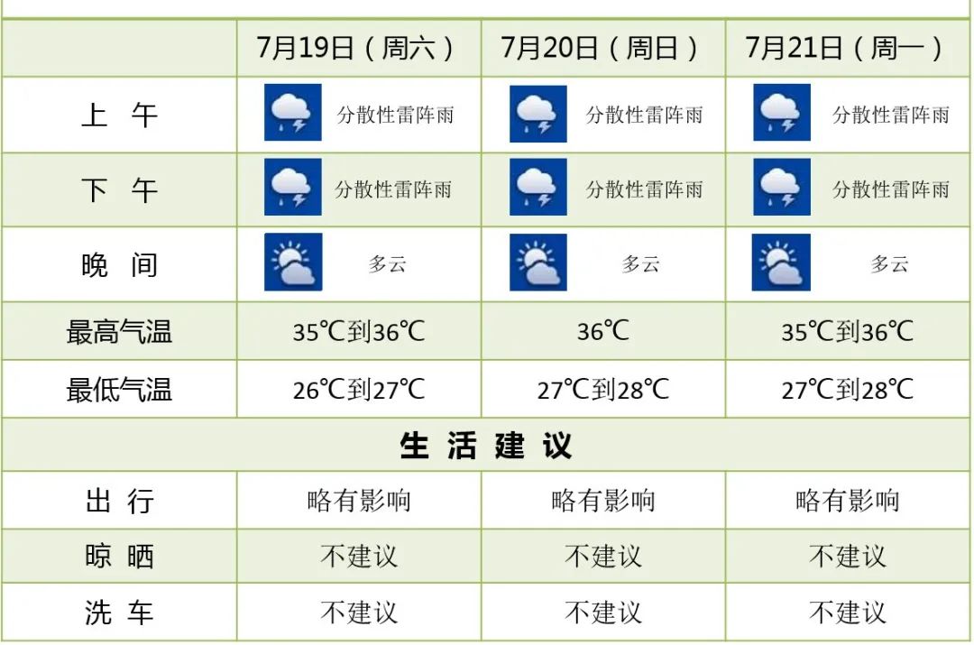 全市有分散性陣雨或雷雨,提醒大家出門(mén)帶好雨具。最高氣溫在35℃到36℃,加上局地分散性雷陣雨,悶熱感非常明顯,提醒大家防暑降溫,記得補(bǔ)水。