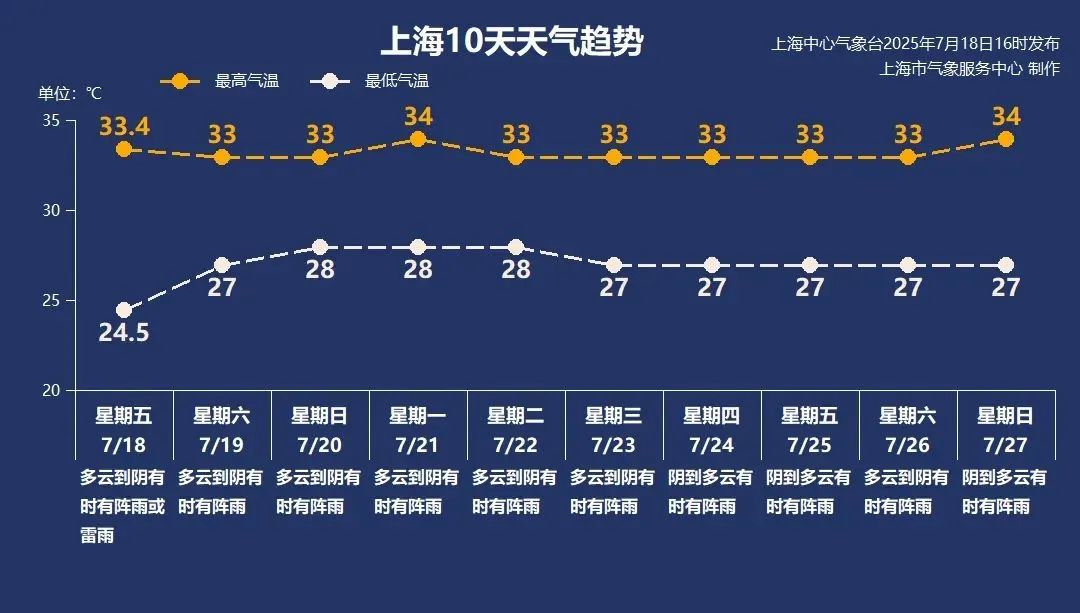 下周前期上海仍在副熱帶高壓邊緣,藍天白云常現(xiàn),偶爾會有散裝陣雨。周后期,受海上熱帶系統(tǒng)外圍影響,本市云系增多,降水會變得明顯。下周氣溫變化不大,總體在27~34℃之間。夏季天氣多變,請大家持續(xù)關(guān)注實時預(yù)報預(yù)警信息。