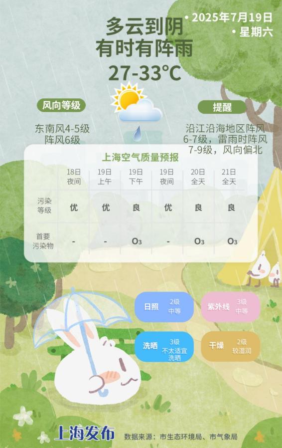 雙休日上海處于副熱帶高壓西南側(cè)邊緣,受東南風影響,天氣以多云到陰為主,藍天、白云、烏云、陣雨會隨機變化。