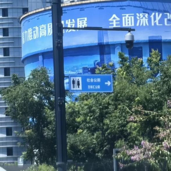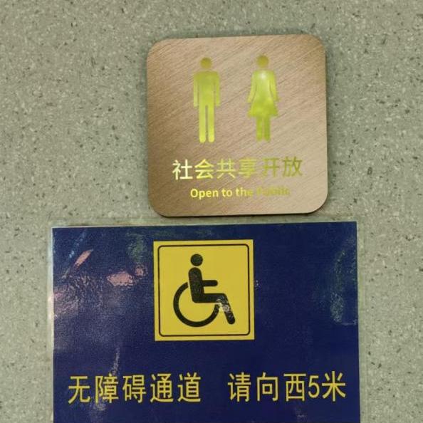 為方便市民尋廁,區(qū)綠化市容局在社會共享公廁周邊的主次干道設置藍色導向牌,沿街單位外立面、入口處張貼“社會共享開放”標識,形成“線上 + 線下”的立體導引體系。即使是不便掛牌的廣元市集,也通過溫馨標識讓市民能“一眼即達”。