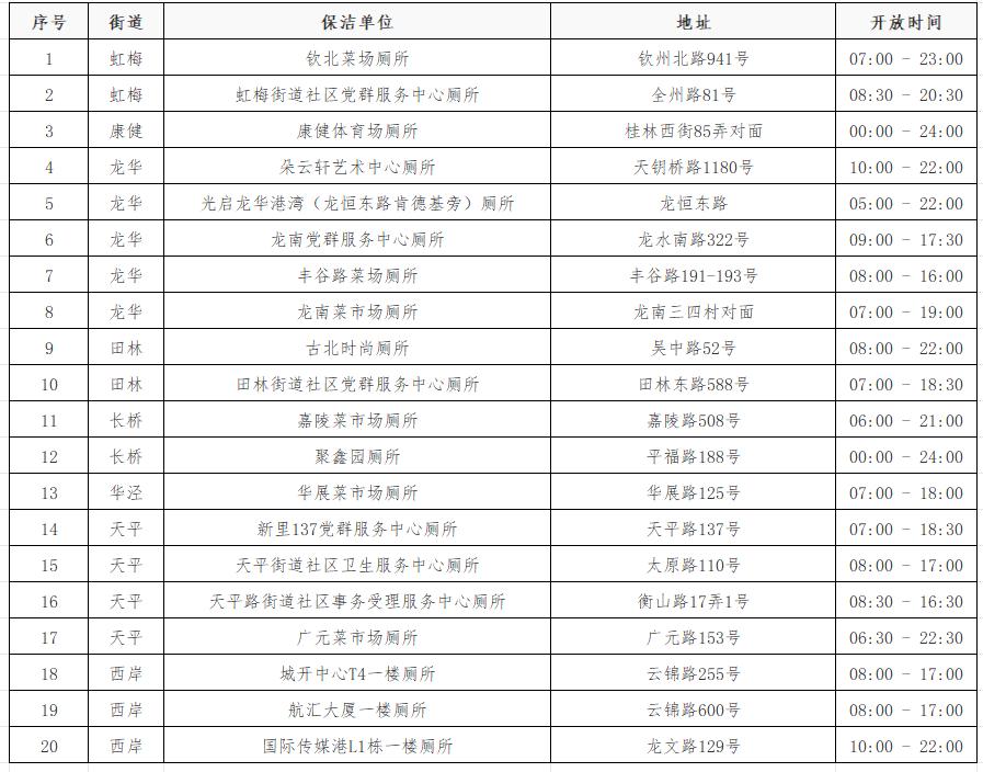 徐匯區(qū)2025年社會公廁開放點位(20座)