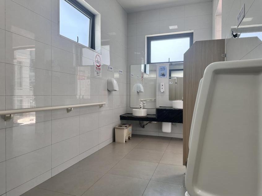 改造還針對不同人群需求進行“精準滴灌”。田林路公廁在墻面轉角處增設圓角防撞條,無障礙廁間內配備應急呼叫按鈕與適幼如廁設施,保障市民的安全與便利。三匯路公廁新增了廁位扶手和通行扶手,方便市民全過程輔助通行和自主如廁,同時公廁內放置了手杖、設置了休息區(qū),進一步提升了人性化、精細化服務水平。