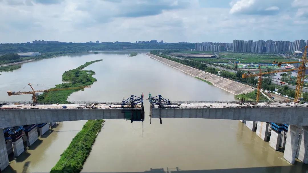 與此同時,作為成眉S5線“咽喉”工程的全線控制性節(jié)點——岷江特大橋也迎來重要進展。成眉S5線總承包部眉山二工區(qū)現(xiàn)場工程師茍愷表示:“現(xiàn)在岷江特大橋副航道橋已成功合龍。當前建設重心在主航道橋,其198米主跨是國內(nèi)在建最大的無砟軌道連續(xù)鋼構鐵路橋。目前,主橋邊跨和中跨的合龍準備工作正在緊張有序進行中?!?/p>