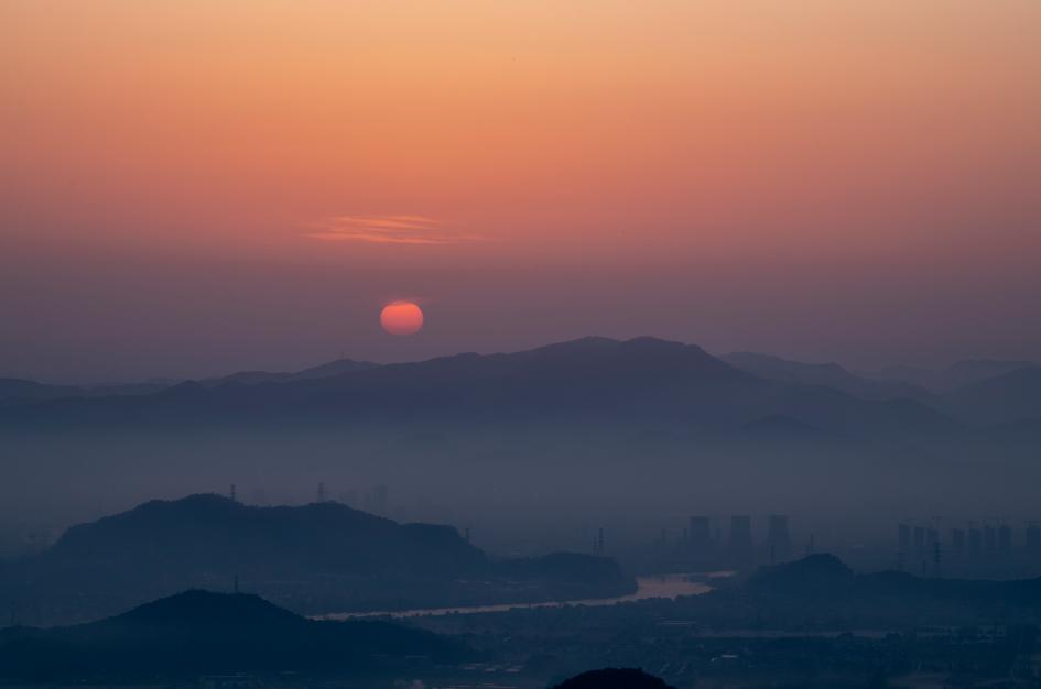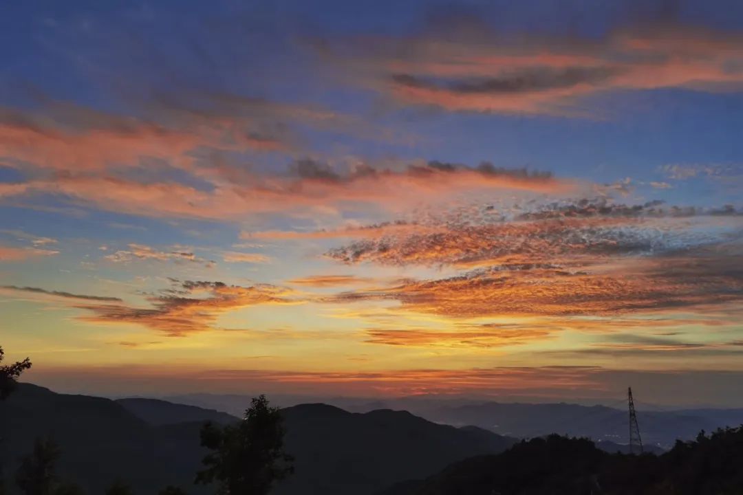 戴村同盤頂,清晨四點(diǎn)的微風(fēng)送來(lái)了東邊的第一縷陽(yáng)光,從粉色到紅色再到橘色,仿佛闖入了漫畫世界。