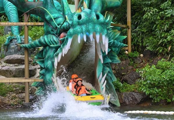河上“龍出沒”探險(xiǎn)漂流,讓你體驗(yàn)速度與激情。俯沖而下時(shí),激起的水花帶來(lái)“清涼暴擊”,在歡呼聲中盡情享受夏日的清涼。