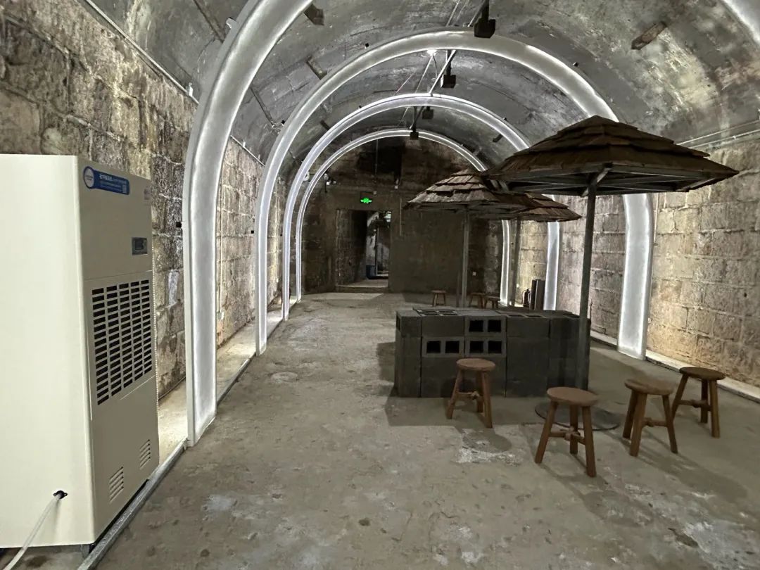 今年,西山坑道避暑納涼點(diǎn)重新開放,不用空調(diào)也能降溫10℃。里面的裝修風(fēng)格很有文藝范,有灰磚砌成的擺臺(tái)、木質(zhì)的裝飾樹和小木凳等??坑业亩纯谶€擺放著免費(fèi)茶水和飲用水。