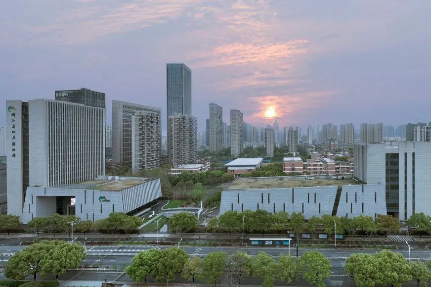 錢江世紀(jì)公園的沿江綠道上,晚霞如打翻的調(diào)色盤,把你我的影子拉得長(zhǎng)長(zhǎng)的。