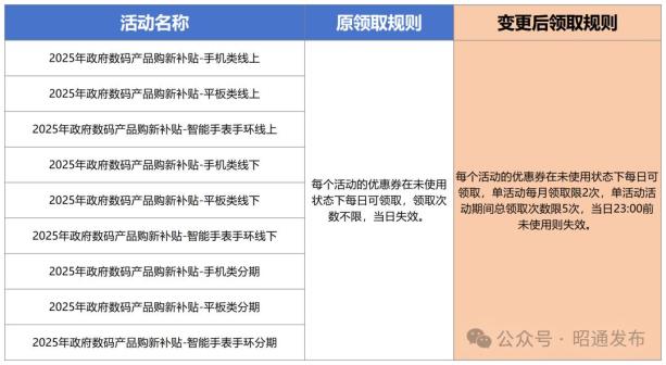 (一)從2025年7月22日10:30起,消費者每人每月領(lǐng)取單個數(shù)碼產(chǎn)品活動優(yōu)惠券的次數(shù)不得超過2次。