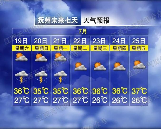 江西的氣溫也會下降。以九江為例,22日最高氣溫為36℃,25日最高氣溫為30℃,直降6℃!