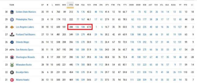 24 - 25季全明星后湖人中鋒合計(jì)得到288分,同期僅優(yōu)于勇士、76人。不過(guò)67%的投籃率同期聯(lián)盟第1,但這更多只能說(shuō)明東契奇等人“餅”做得好。