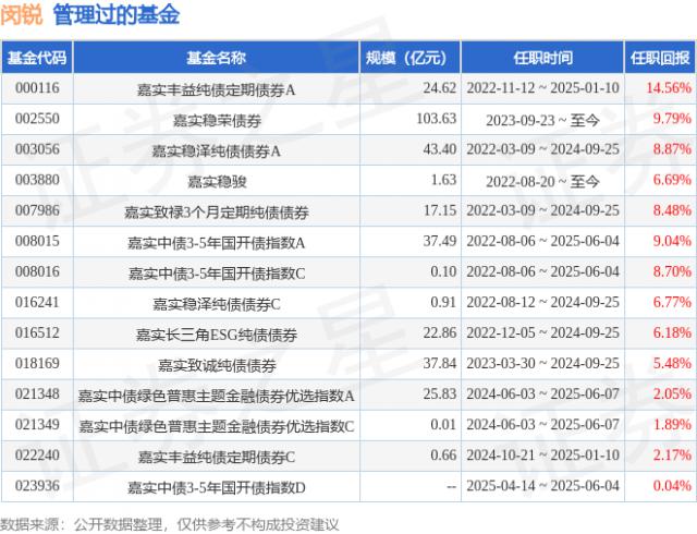 閔銳女士為中國國籍,碩士研究生,具備基金從業(yè)資格。2015年10月,她加入嘉實(shí)基金管理有限公司固定收益研究部,從事信用研究工作。她曾在多個時間段擔(dān)任不同基金的基金經(jīng)理,具體如下:2022年3月9日至2024年9月25日任嘉實(shí)穩(wěn)澤純債債券型證券投資基金基金經(jīng)理;2022年3月9日至2024年9月25日任嘉實(shí)致祿3個月定期開放純債債券型發(fā)起式證券投資基金基金經(jīng)理;2022年11月12日至2025年1月10日任嘉實(shí)豐益純債定期開放債券型證券投資基金基金經(jīng)理;2022年12月5日至2024年9月25日任嘉實(shí)長三角ESG純債債券型證券投資基金基金經(jīng)理;2023年3月30日至2024年9月25日任嘉實(shí)致誠純債債券型證券投資基金基金經(jīng)理;2022年8月6日至2025年6月4日任嘉實(shí)中債3 - 5年國開行債券指數(shù)證券投資基金基金經(jīng)理;2022年8月20日至今任嘉實(shí)穩(wěn)駿純債債券型證券投資基金基金經(jīng)理;2023年9月23日至今任嘉實(shí)穩(wěn)榮債券型證券投資基金基金經(jīng)理;2024年6月3日至2025年6月7日任嘉實(shí)中債綠色普惠主題金融債券優(yōu)選指數(shù)證券投資基金基金經(jīng)理。自2025年6月21日起,她擔(dān)任嘉實(shí)穩(wěn)瑞純債債券基金經(jīng)理。