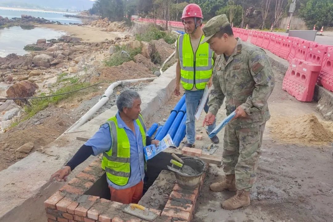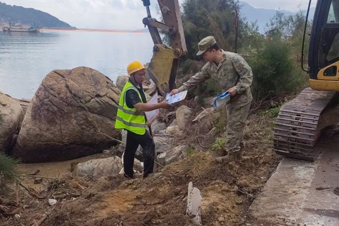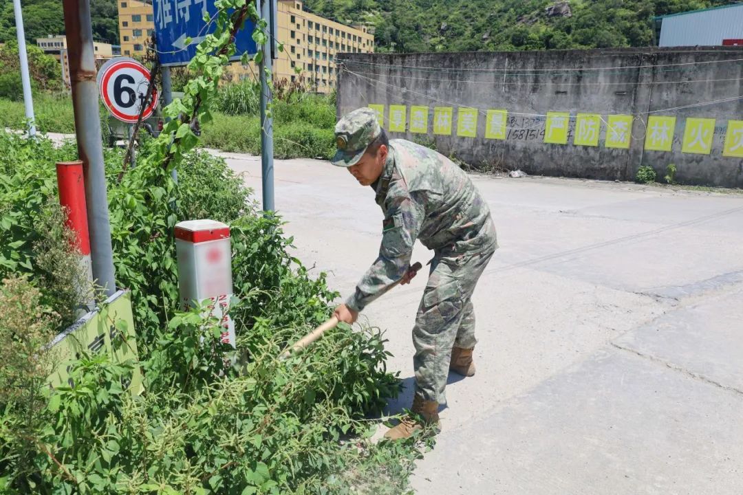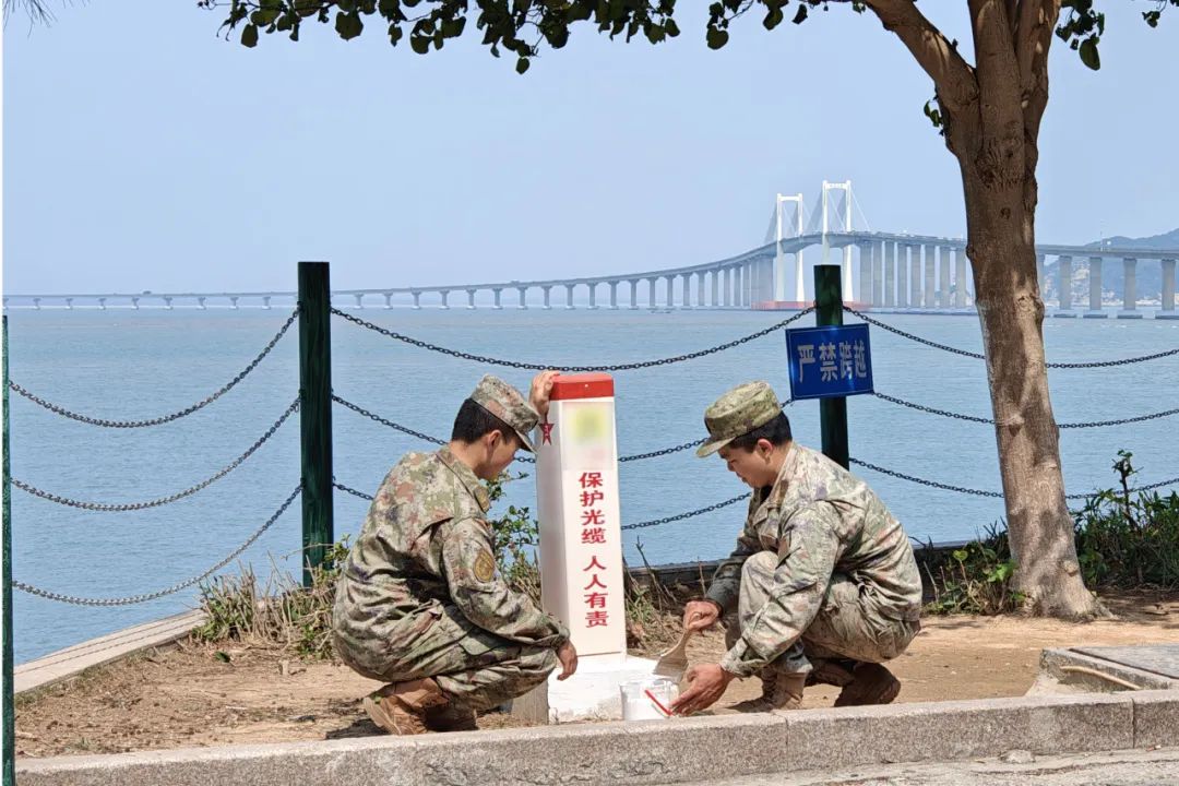 密林中,七月的南澳島悶熱潮濕,官兵們揮汗如雨。他們用鐮刀快速劈斬,清除攀附光纜標(biāo)識(shí)的藤蔓灌木。頭上烈日當(dāng)空,腳下紅土灼熱,但他們毫不懈怠、目光銳利,確保標(biāo)識(shí)沒(méi)有一絲遮蔽。