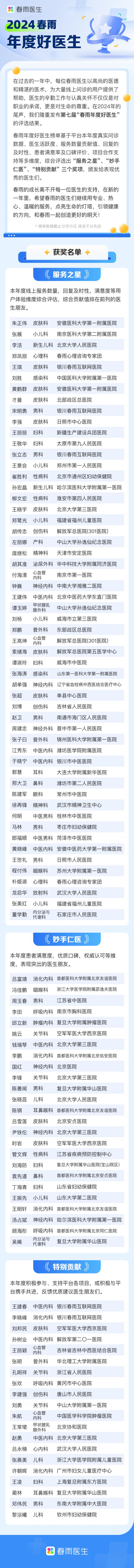 像丁醫(yī)生這樣細(xì)心、耐心有同理心的醫(yī)生,在春雨平臺(tái)有很多。春雨基于平臺(tái)2024年真實(shí)問(wèn)診數(shù)據(jù)、醫(yī)生活躍度、服務(wù)數(shù)量貢獻(xiàn)值、回復(fù)及時(shí)性、患者滿(mǎn)意率及口碑評(píng)價(jià)、項(xiàng)目合作支持等多維度,綜合評(píng)選出2024春雨年度好醫(yī)生,包含“服務(wù)之星”“妙手仁醫(yī)”“特別貢獻(xiàn)”三個(gè)獎(jiǎng)項(xiàng)。