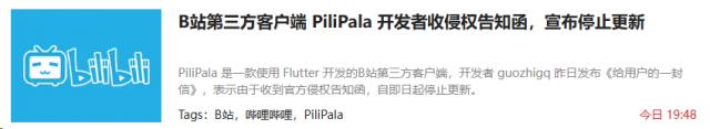 所以于情于理,PiliPala都確實得按照B站要求,停止維護更新。市面上其他第三方App,也有著類似的風險。只能說且用且珍惜吧。