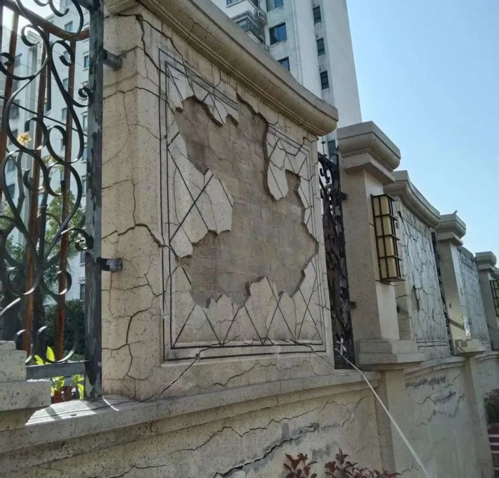 此前,上海寶山區(qū)淞南鎮(zhèn)駿景雅苑社區(qū)出口附近一堵圍墻坍塌,雖經(jīng)局部修繕,但隱患仍存,讓市民憂心忡忡。