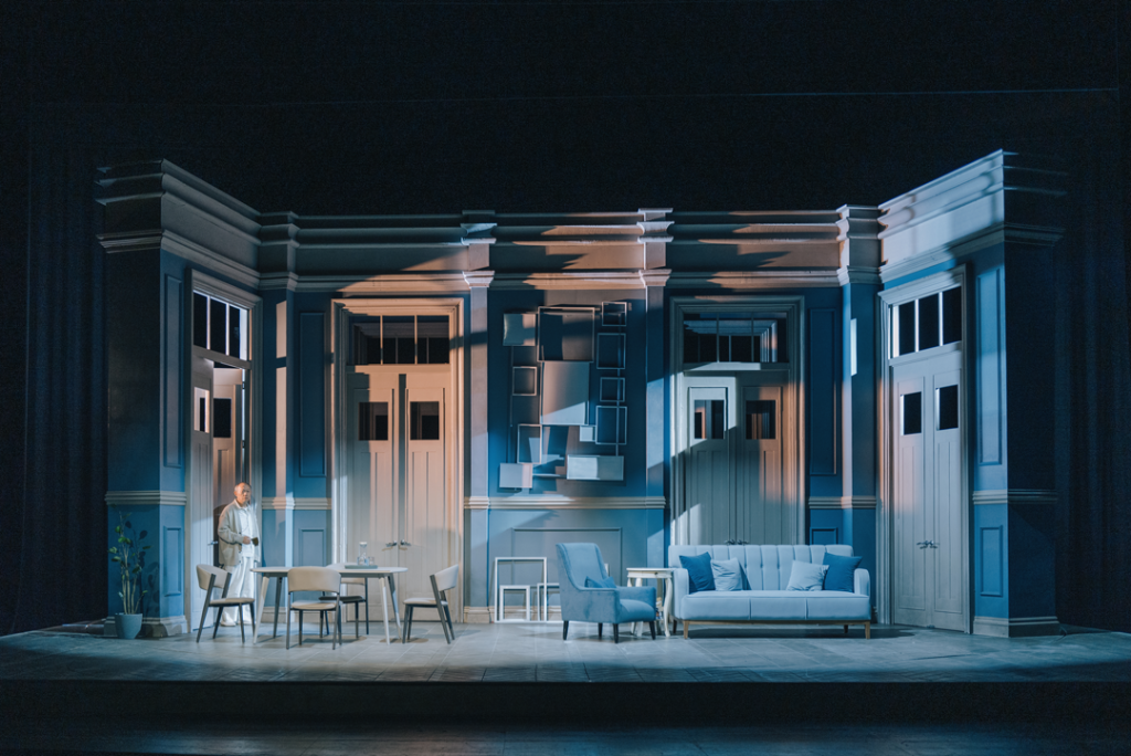 在澤勒的劇本中,關(guān)于如何體現(xiàn)父親病后所體驗的時空錯亂,他提示道:“隨著情節(jié)的推進,客廳里的擺設(shè)將一一消失,最后變成一個空無一物、中性的空間”,這句簡略的交代對舞臺設(shè)計是一個很大的挑戰(zhàn)。話劇《父親》對此的處理頗具創(chuàng)意,超出了原著的設(shè)定,成為一大亮點。