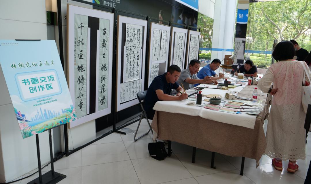 中午時(shí)分,萬(wàn)都中心一樓大廳里傳統(tǒng)樂(lè)聲悠揚(yáng),活動(dòng)現(xiàn)場(chǎng)宛如一條流動(dòng)的“文化長(zhǎng)廊”,多個(gè)傳統(tǒng)文化體驗(yàn)展臺(tái)被市民圍得滿滿當(dāng)當(dāng)。在書畫交流體驗(yàn)區(qū),長(zhǎng)寧職工書畫社的書畫家們現(xiàn)場(chǎng)即興創(chuàng)作。市民既可以請(qǐng)老師題寫所需文字,也有按捺不住的人拿起筆,動(dòng)手制作屬于自己的個(gè)性書畫小掛件。